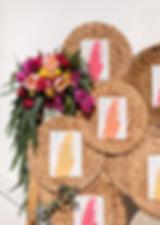 Bright colors were also incorporated into the wedding reception decor. Each table had a custom plexiglass table number on it.